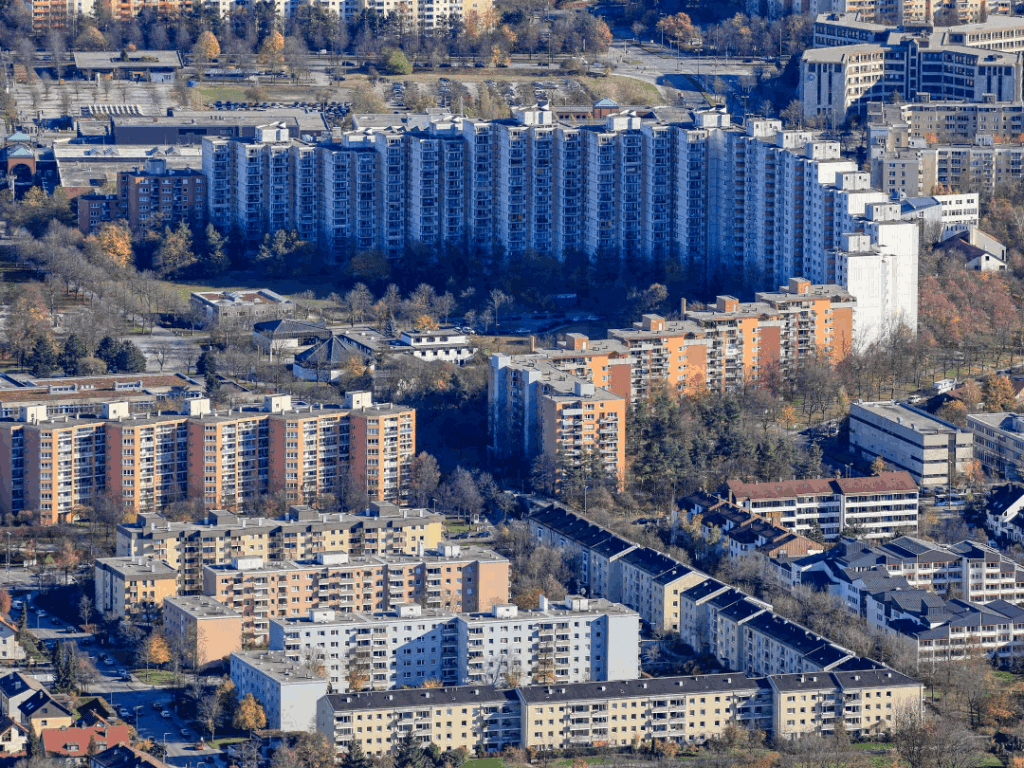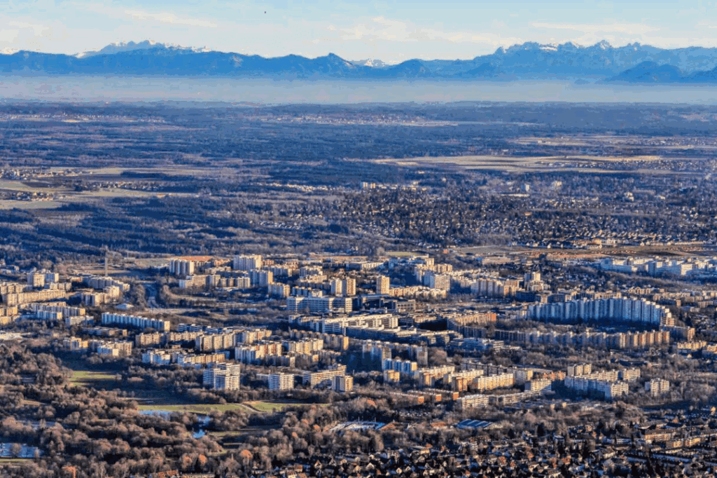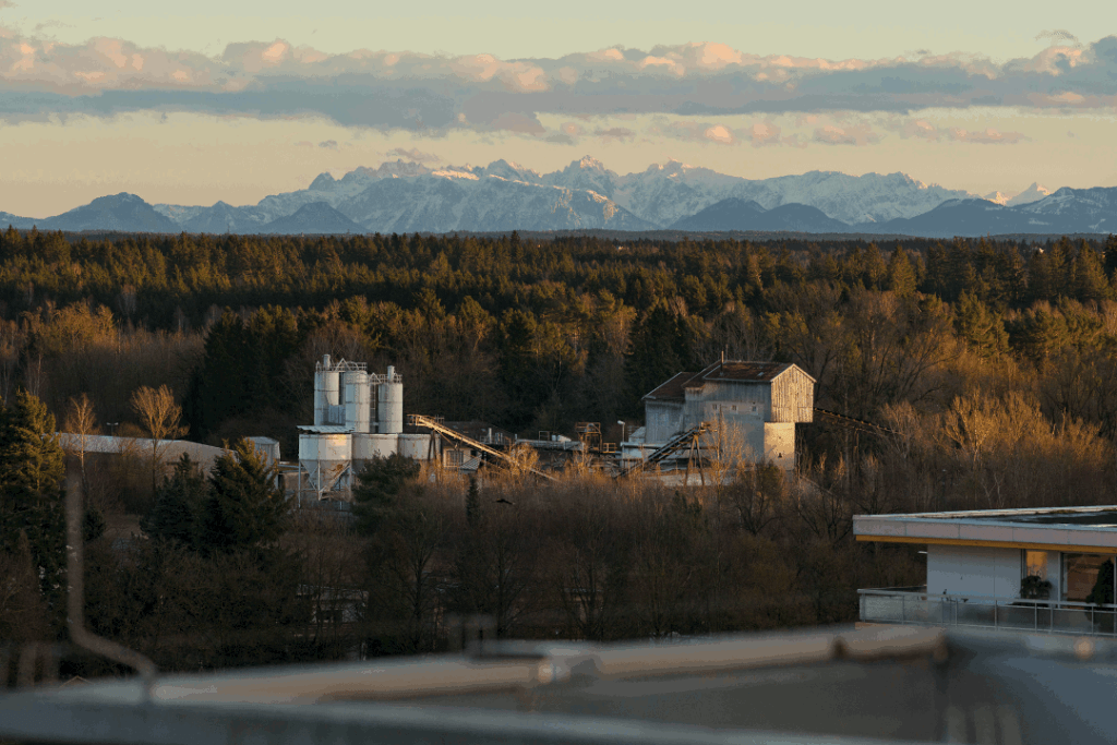 Южная часть района, где находится наша квартира, — Нойперлах (Neuperlach) — активно застраивается с конца 1960-х. Многоэтажные дома здесь напоминают советскую панельную архитектуру, но разнообразие форм, цветовые решения и концепция «города в городе» делают Нойперлах образцом западногерманского модернизма. Архитекторы нередко сравнивают его с берлинским Gropiusstadt и венским Alterlaa — районами, схожими по духу и архитектурной выразительности. Тем не менее утренние фотографии жены с фрагментами ландшафта за окном чаще навевают ассоциации с жилыми массивами советского времени. Мы по привычке зовём наш вид из окна Черёмушками — в крайнем случае, Чертаново. Нам, поклонникам «Иронии судьбы», так привычнее и роднее.