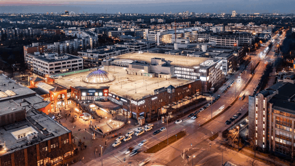 Рядом с домом есть всё необходимое для комфортной жизни: школа, детские сады, аптека, кондитерская. В нескольких минутах ходьбы — торговый центр PEP (Perlacher Einkaufs Passagen), один из крупнейших в Мюнхене, с более чем 125 магазинами, включая крупные международные бренды. Напротив, на месте бывшего пустыря с парковкой и парой деревьев, расположился новый комплекс PEP Plaza с гостиницами, ресторанами, жилыми апартаментами и зелёными зонами на разных уровнях — от крыш до внутренних двориков. По пятницам во дворе жилого комплекса разворачивается рынок на колёсах, а возле детской площадки время от времени проходит фестиваль уличной еды.